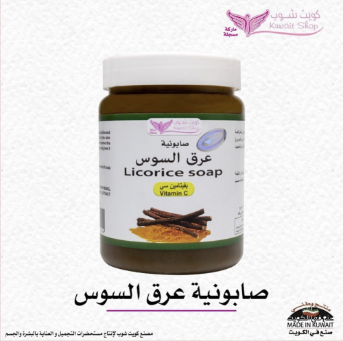 تستخدم صابونية عرق السوس في تنظيف البشرة وإزالة الشوائب والدهون المتراكمة وتساعد على تفتيح وتوحيد لون البشرة تدريجياً لإحتوائها على خلاصة عرق السوس وأيضاً تساعد على تحسين مظهر البقع الداكنة في الجسم، ترطب البشرة وتمنحها نضارة وحيوية وإشراق. تحتوي على زيت عباد الشمس، زيت جوز الهند، جلسرين، دي بانثينول، لانولين، عطر، كافيين، خلاصة عرق السوس، فيتامين C ، فيتامين E، ماء مكرر طريقة الإستخدام: يغسل الجسم بالماء ثم يوضع كمية من الصابونية على الوجه والجسم ويفرك بأطراف الأصابع بشكل دائري حتى تظهر الرغوة ويترك فترة قصيرة على البشرة والوجه ثم يغسل بالماء وتكرر العملية على حسب الرغبة