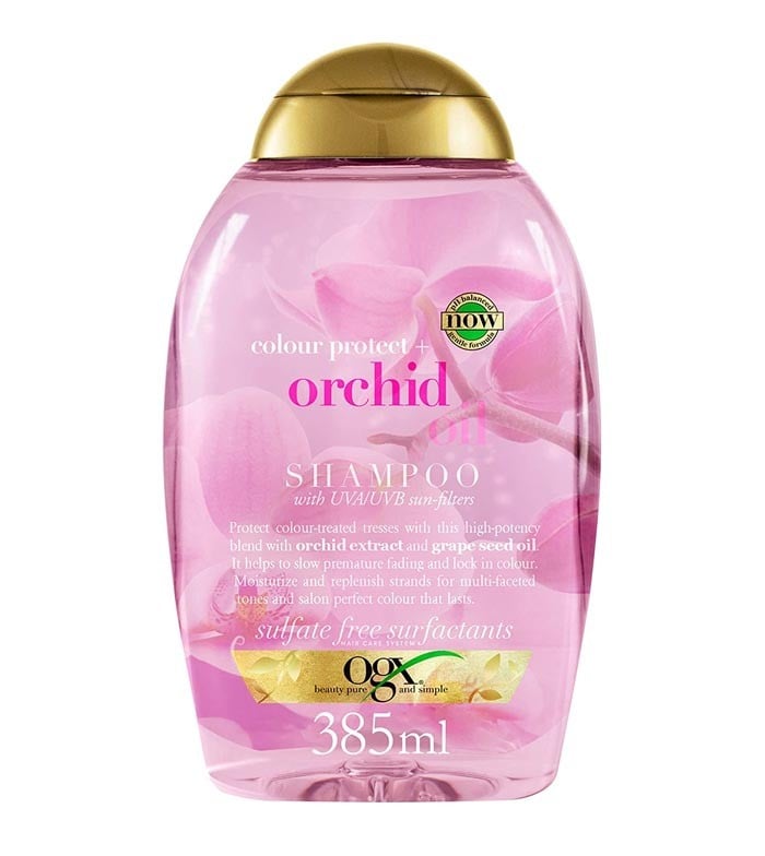 احمي الشعر الملون باستخدام شامبو زيت الأوركيد من أو جي إكس بفضل مزيجه القوي من مستخلص الأوركيد وزيت بذور العنب.