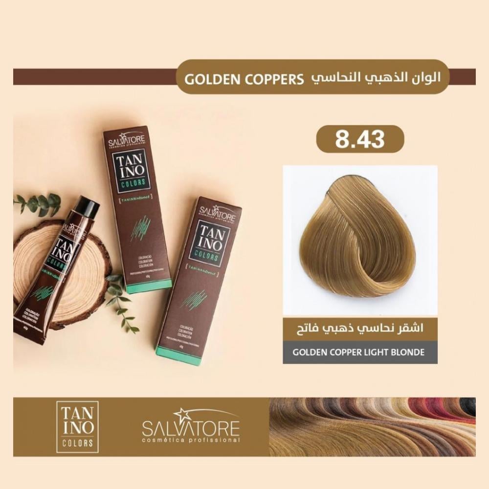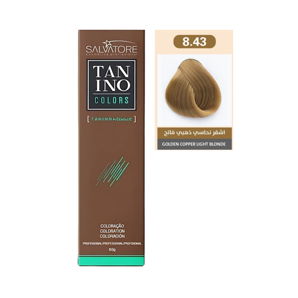 صبغة سيلفاتوري بلون أشقر نحاسي ذهبي فاتح 8.43 تمنحكِ إطلالة مشرقة ودافئة بدرجة لونية غنية تجمع بين الأشقر والنحاسي والذهبي. مثالية لمن تبحث عن لون شعر لامع وطبيعي مع لمسة من الدفء والإشراق. تركيبتها الفعّالة تغطي الشعر الأبيض تمامًا وتساعد على الحفاظ على صحة الشعر ونعومته، مما يضمن لكِ لونًا طويل الأمد وشعرًا صحيًا.