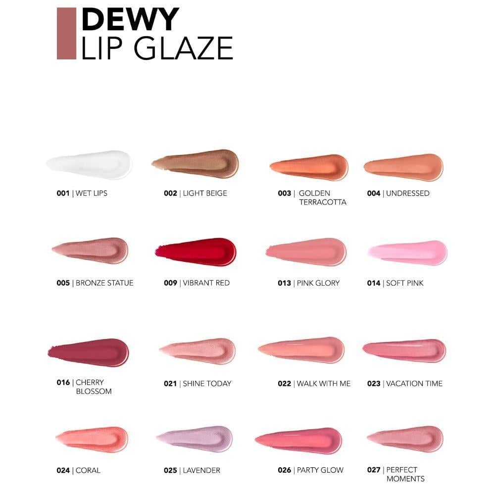 أكملي مظهرك مع 20 خيارًا من الألوان النابضة بالحياة من Dewy Lip Glaze المتوفرة بلمسات نهائية لامعة معدنية ولؤلؤية وزجاجية.